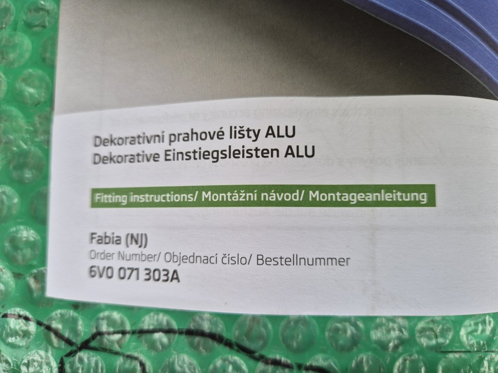 ozdobné prahové lišty ALU přední + zadní Škoda Fabia III (NJ) 6V0071303A