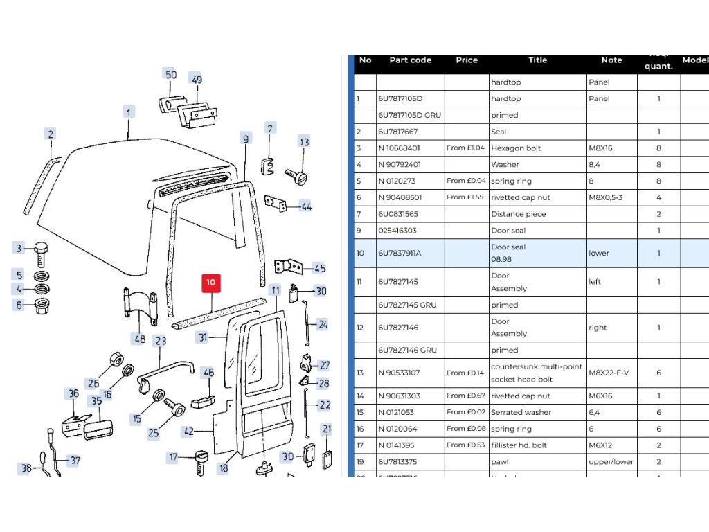 těsnění zadních dveří spodní Škoda Felicia Pick-Up 6U7837911A
